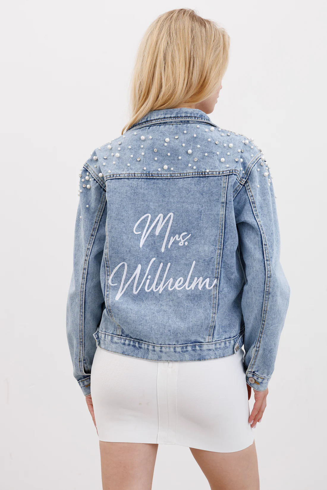 Create a personalized bridal jacket that’s as special as your big day. Perfect for your bridal showers, bachelorette parties, and wedding day! Whether you’re getting ready with your bridal party or need a fun touch for your reception, our custom denim jackets are the perfect way to express your individuality and make a statement on your wedding day!