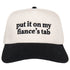 "Put it on my fiancé's tab!" Because, let’s be real, he’s got it covered. This funny two-toned vintage hat is a must-have for your boutique’s playful side. Featuring an embroidered slogan that’s sure to get a laugh, this cap adds a fun twist to any outfit—whether you're brunching or sipping margaritas. This hat is perfect for customers who love to show off their sassy, fun side.